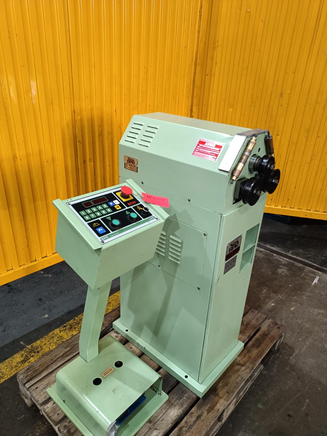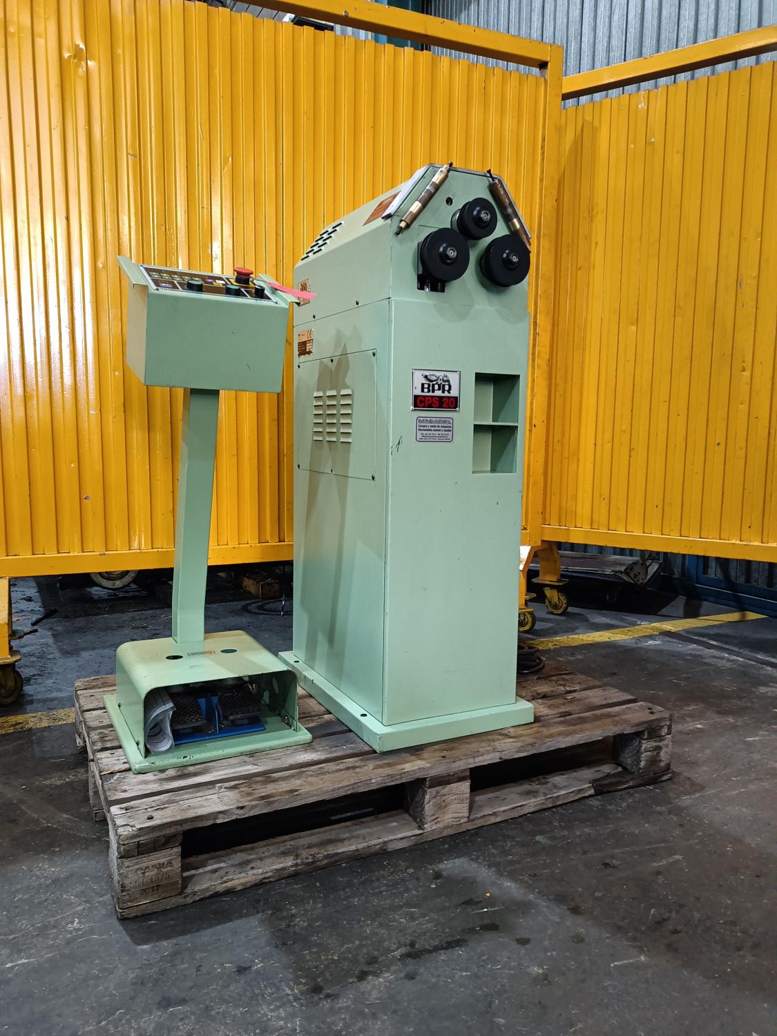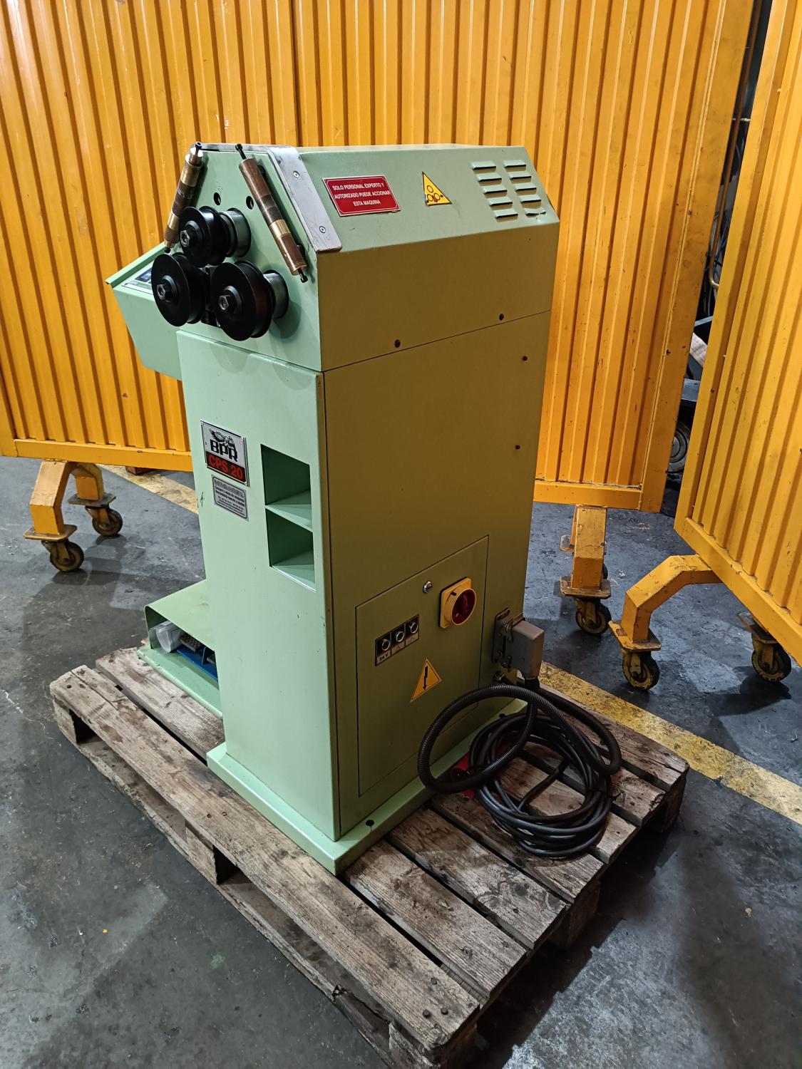 CURVADORA DE PERFILES. Tipo: Tracción a 3 ejes. Marca: BPR-CPS-20. Motor principal: 0’5 Hp a 380V, Capacidad: Pletina al canto 25 x 6, pletina al plano 45 x 10, tubo cuadrado20 x 20, tubo redondo Ø 30 x 1’5 mm. País de origen: Italia. Control: Hornacina de mandos. Accesorios: Apriete hidráulico, variador de frecuencia, control digital de posición, manual de instrucciones y certificado C.E.USADA.