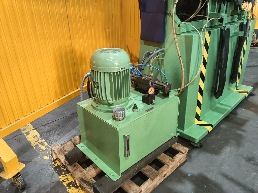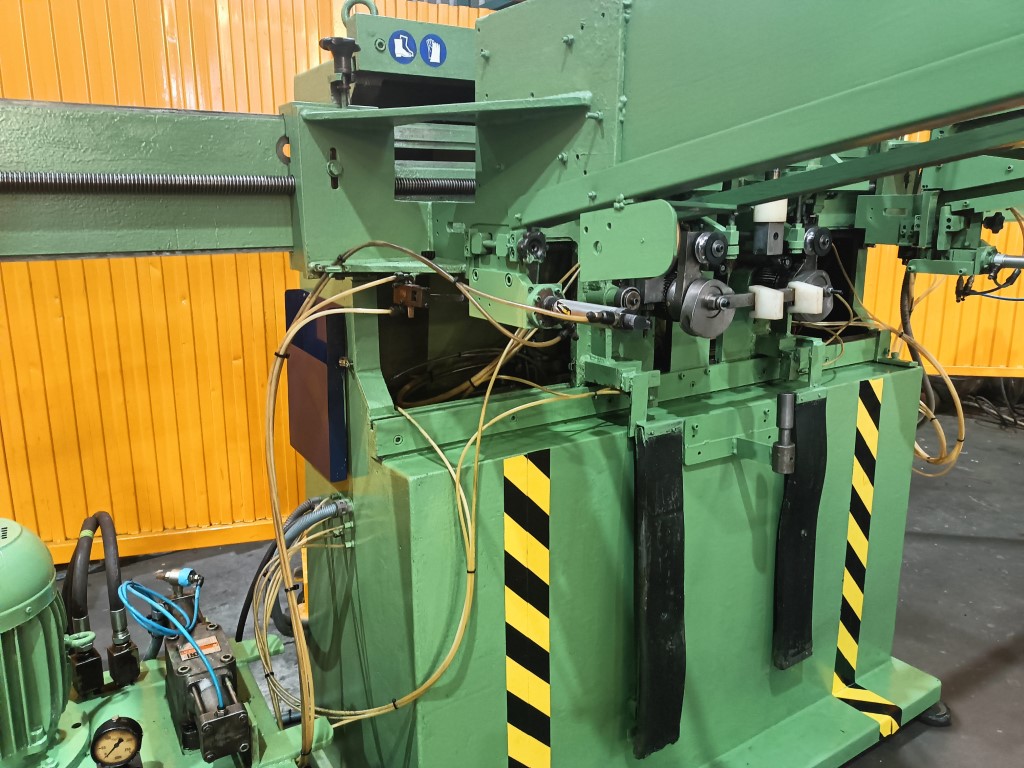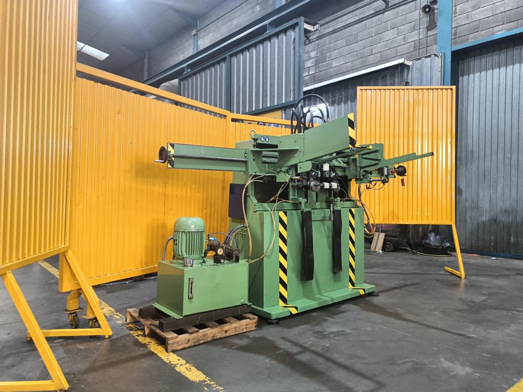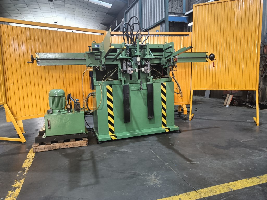 CURVADORA DE DOBLE CABEZAL E.T. Hidráulica , Motor 7.5 H.P., 3.2Tn de fuerza cada pistón, capacidad Max Ø30 mm. Aprox. Con cargador de barras hasta 2.75 m. , hace 2 curvas al mismo tiempo , con matrices para tubo de Ø20, con manual de instrucciones. Dimensiones 3.6 x 1.7 x 1.9 m. peso 1045 Kg. USADA