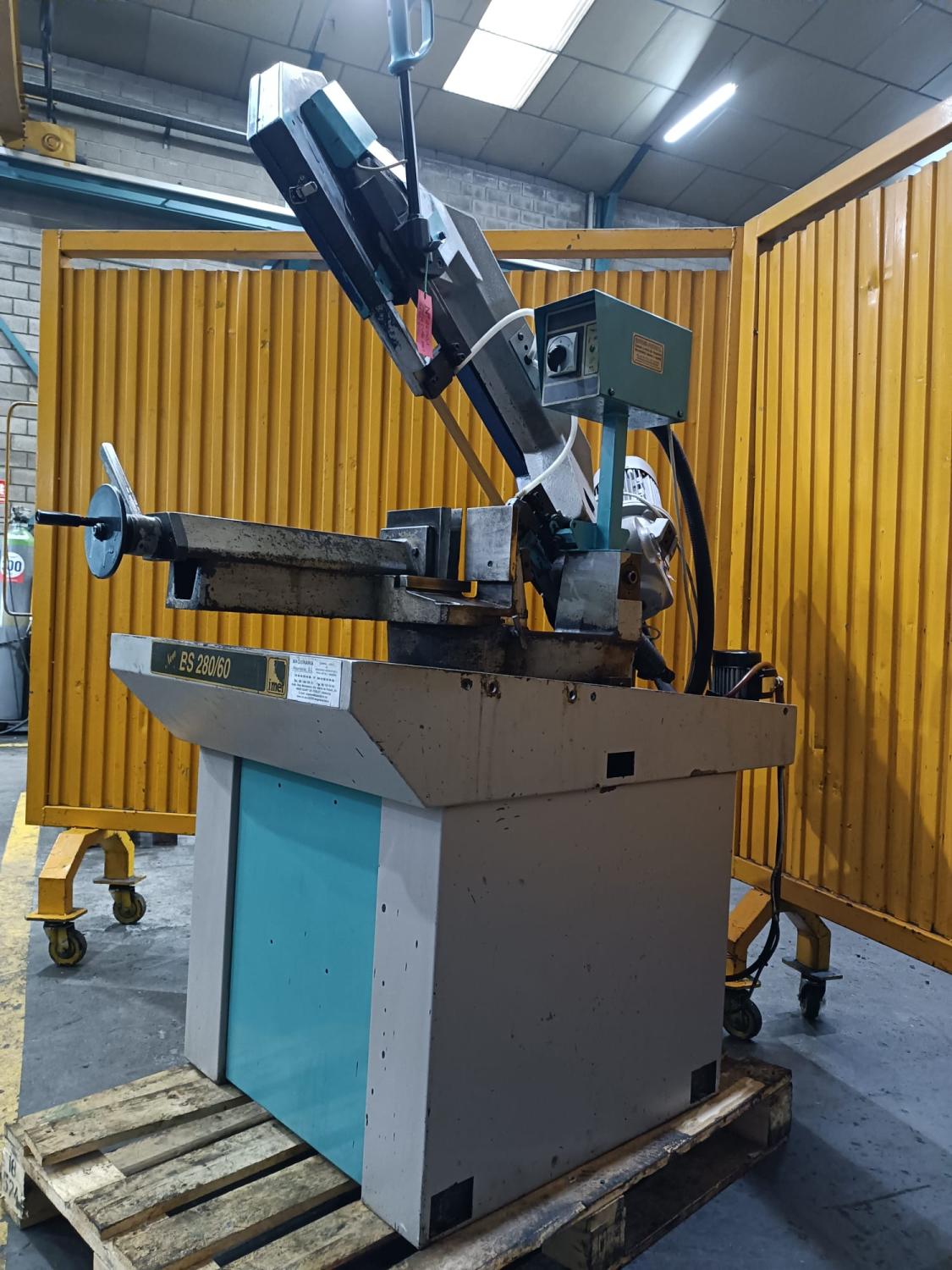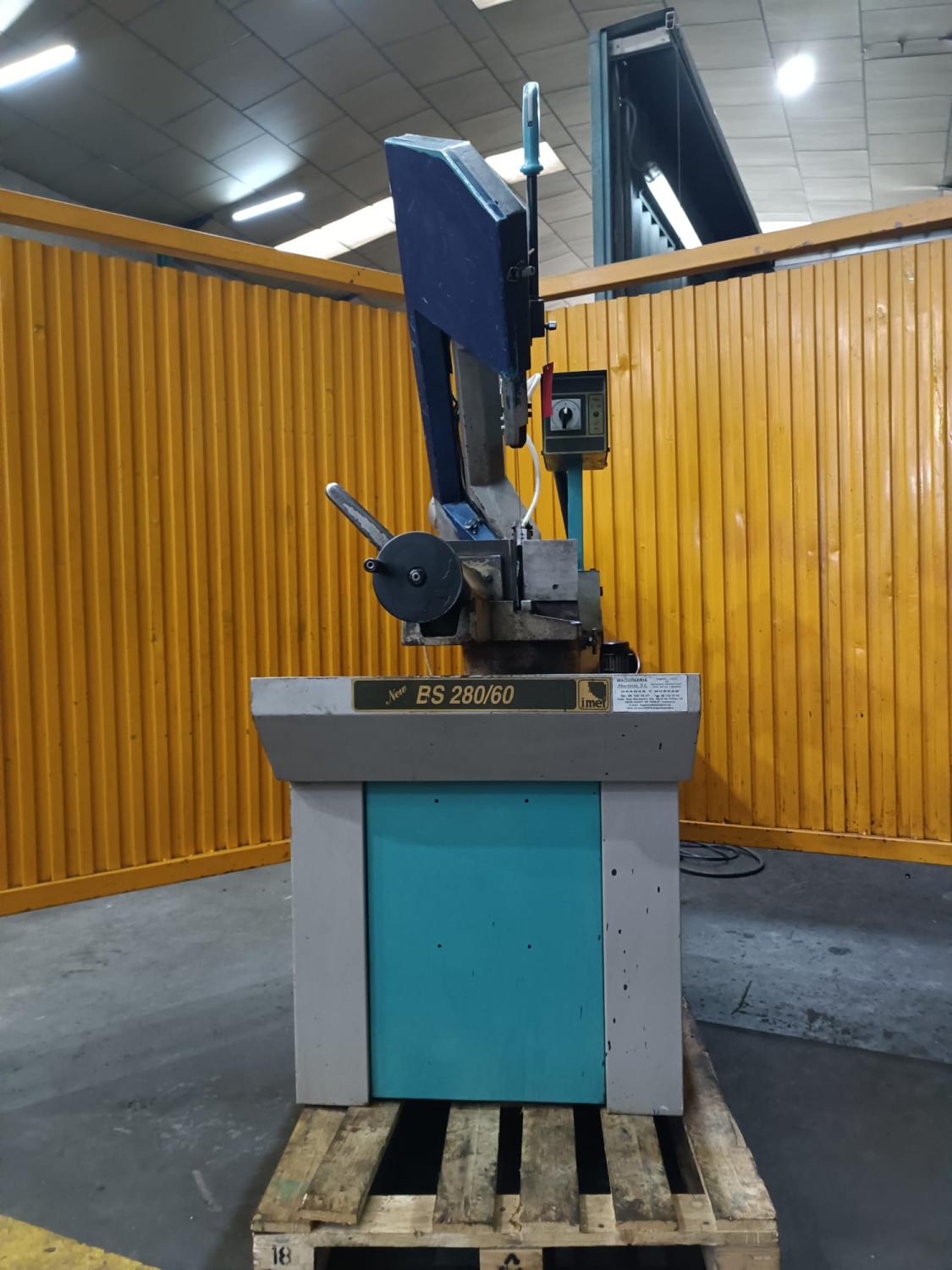 SIERRA DE CINTA MANUAL, Marca: IMET BS-280/60 Motor: 1,8 Hp a 380 V, 2 velocidades, Capacidad: 280 mm, Año de fabricación: 2016, Pais de Origen: Italia, Accesorios: Bomba lubricación, Dimensiones: 1,20 x 0,80 x 1,40 mm. Peso: 320 Kg. USADA.