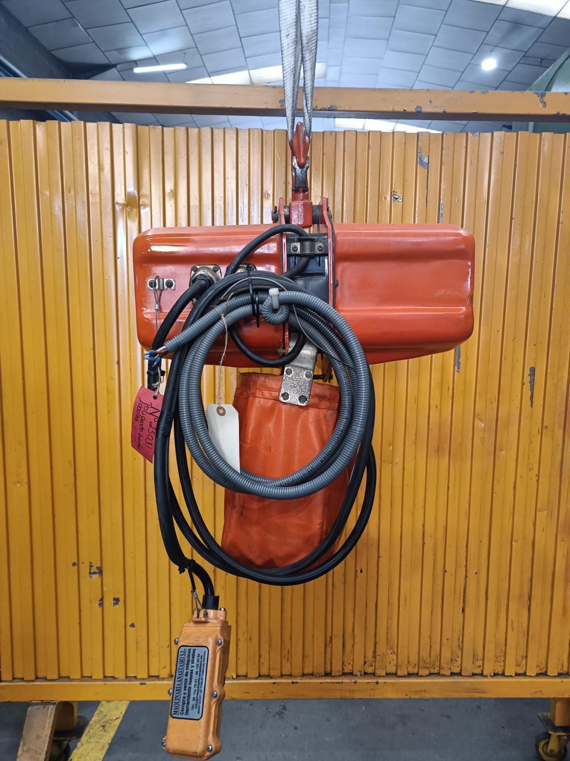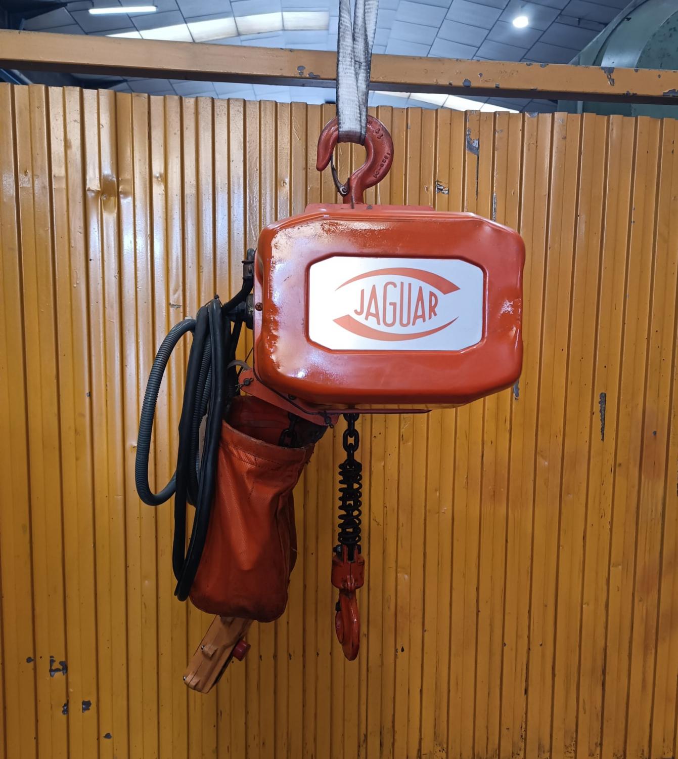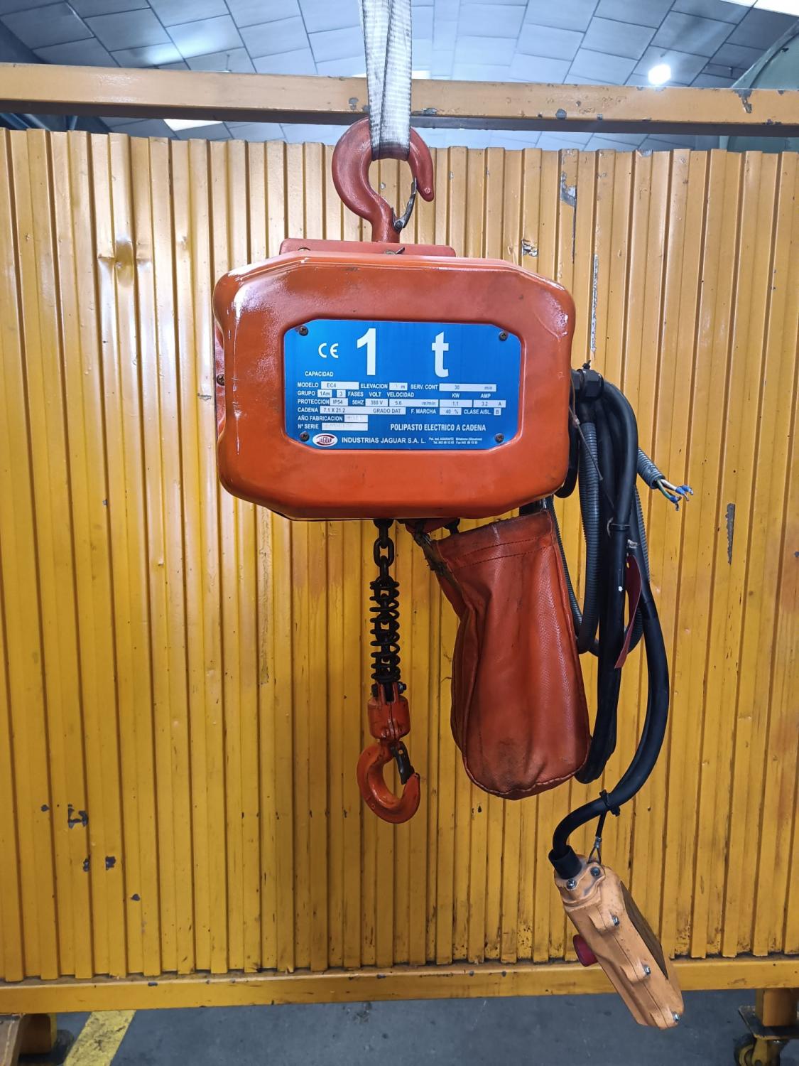 POLIPASTO de cadena JAGUAR, motor: 1 Hp a 380 V, capacidad: 1000 Kg, Año fabricación: 2012. País Origen: ESPAÑA, Accesorios: CARRO A EMPUJE. Peso: 50 Kg aprox. USADA.