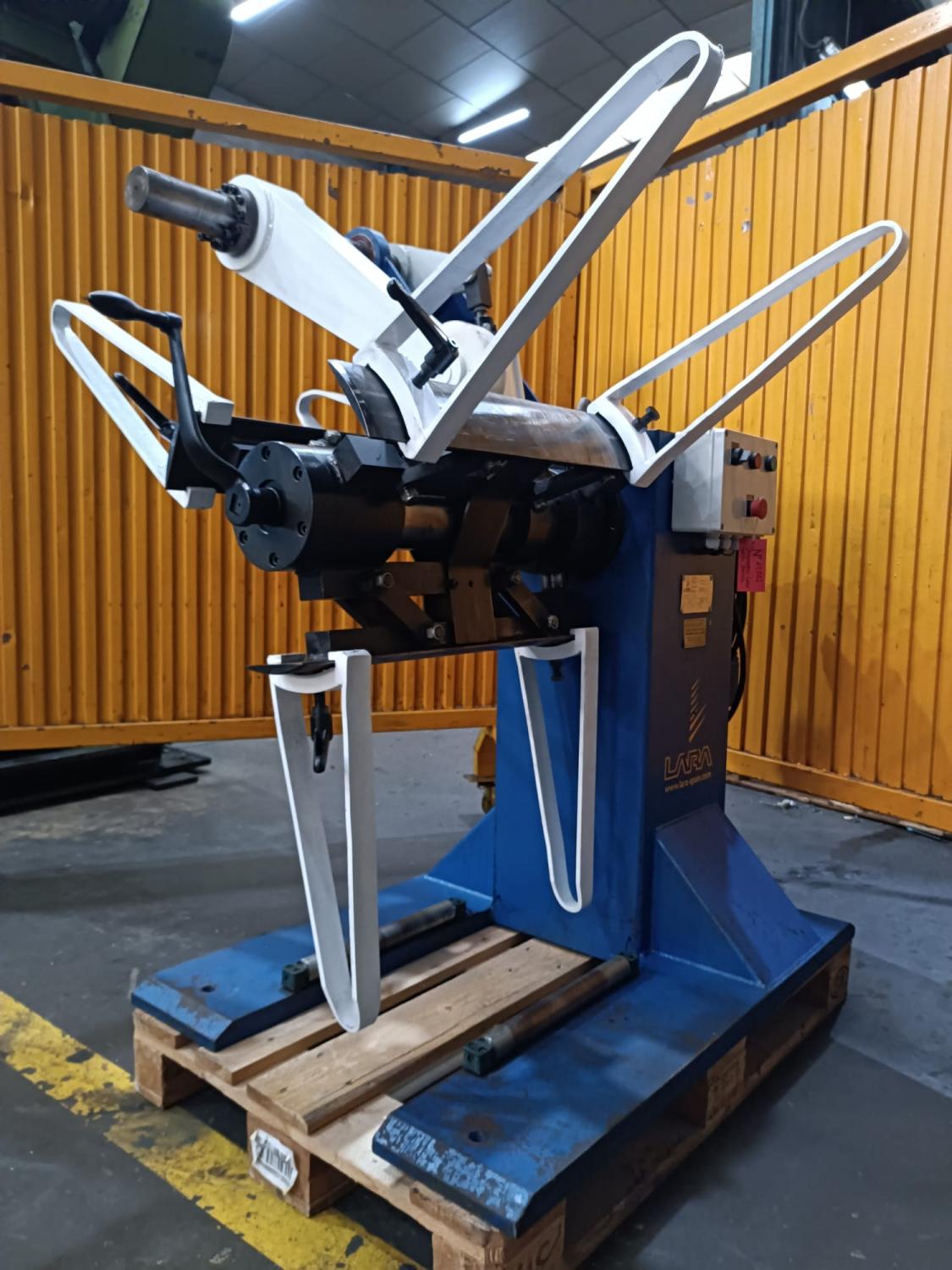 DEVANADERA MOTORIZADA Marca: LARA D3000/1400 Motor: 2,5 HP a 380V Capacidad: 3000 Kg Ø Max 1400, ancho 600 mm Ø Int 450 a 530 mm Año fabricación: 2002 Pais Origen: ESPAÑA Caracteristicas: MOTORIZADA Accesorios: Brazo Pisón neumatico, expansión mecánica, marcado CE y libro de instrucción. Dimensiones: 1500 x 1300 x 1500 mm. Peso: 790 Kg. USADA.