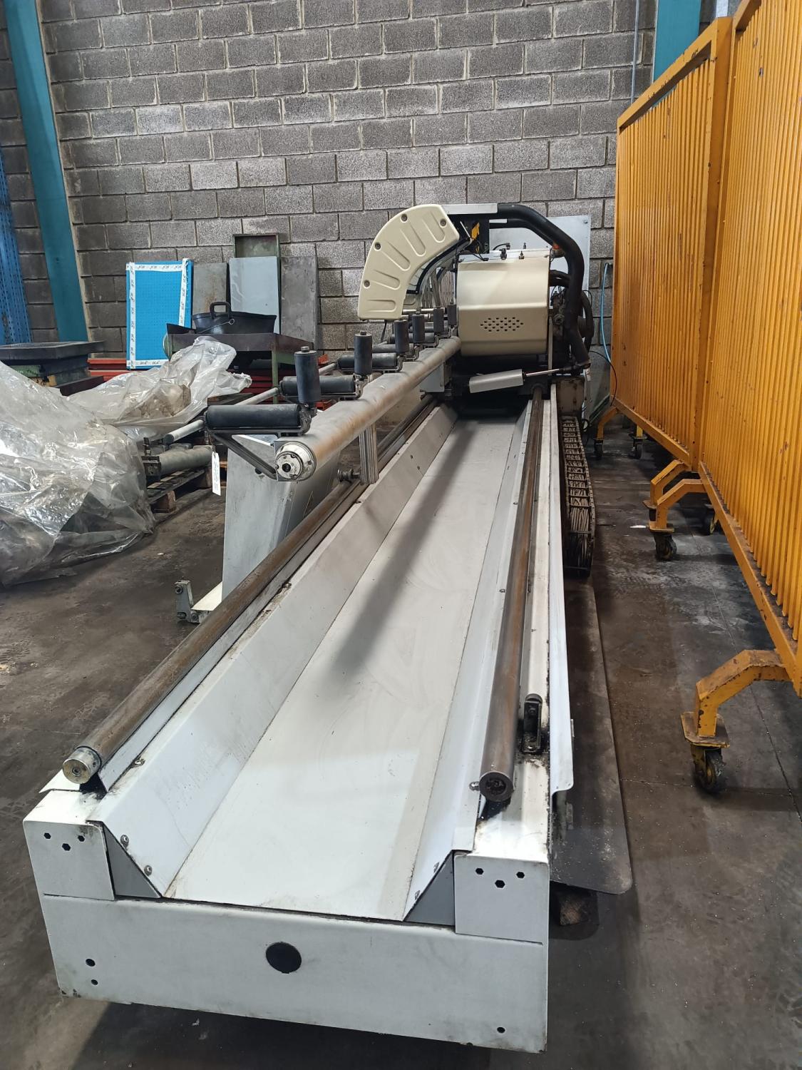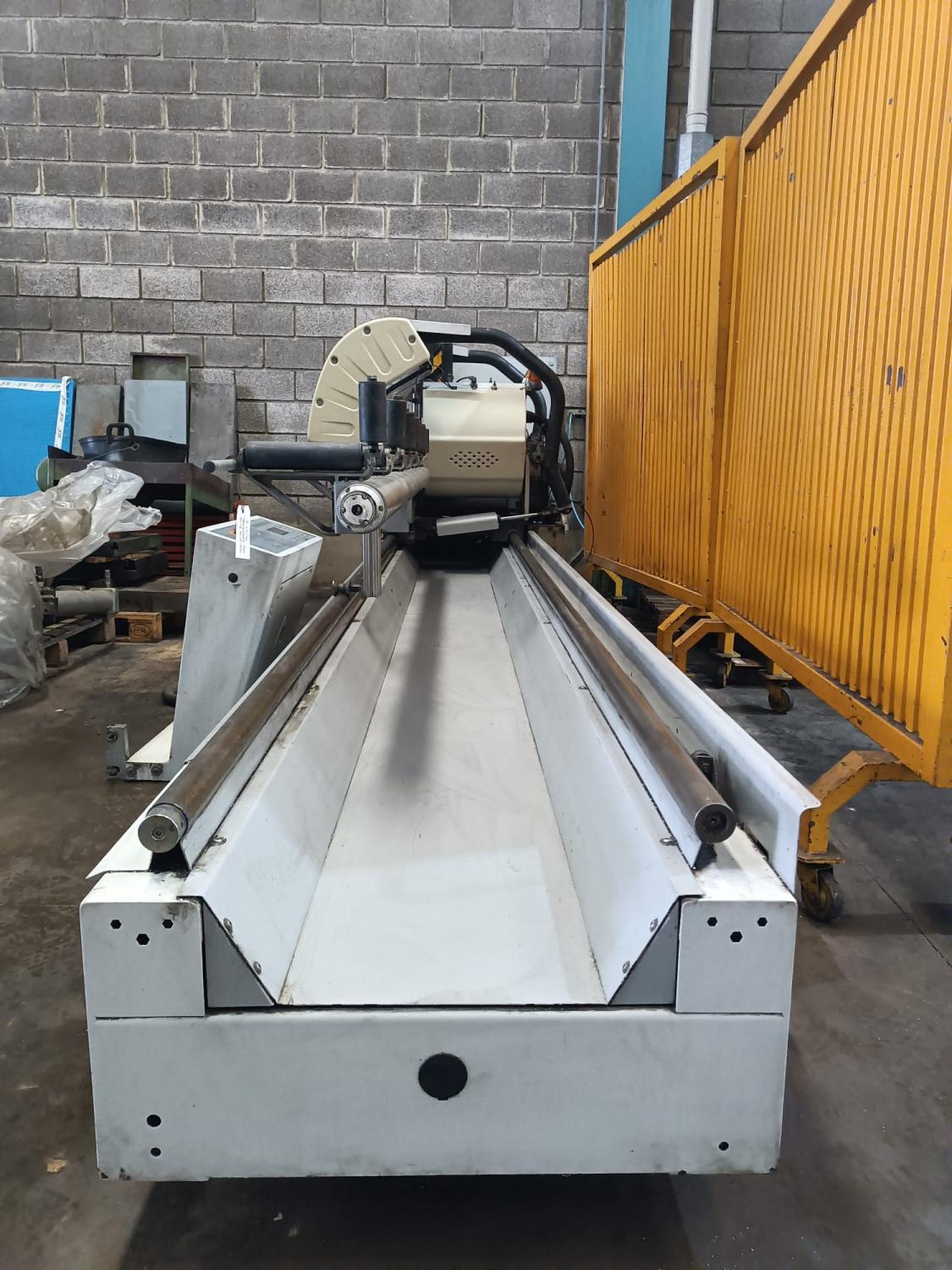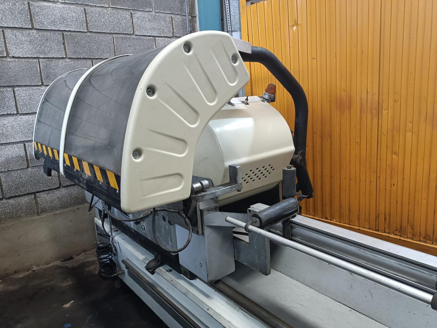 Double-Head Cutting Machine for Aluminum Type: 500 A LUX Brand: BLITZ ALVA-500 Motor: 2 x 3HP Capacity: 90º 170x200 / 100 x 300 - 45º 150x150 / 50x230 Year of Manufacture: 2008 Country of Origin: Italy. Distance between heads: 4 m Accessories: With clamps, feed, head tilt, pneumatics, CNC head position control. Dimensions: 6865 x 1600 x 1950. Weight: 1620 KG. WITH INSTRUCTION MANUAL AND CE CERTIFICATE. BARGAIN.