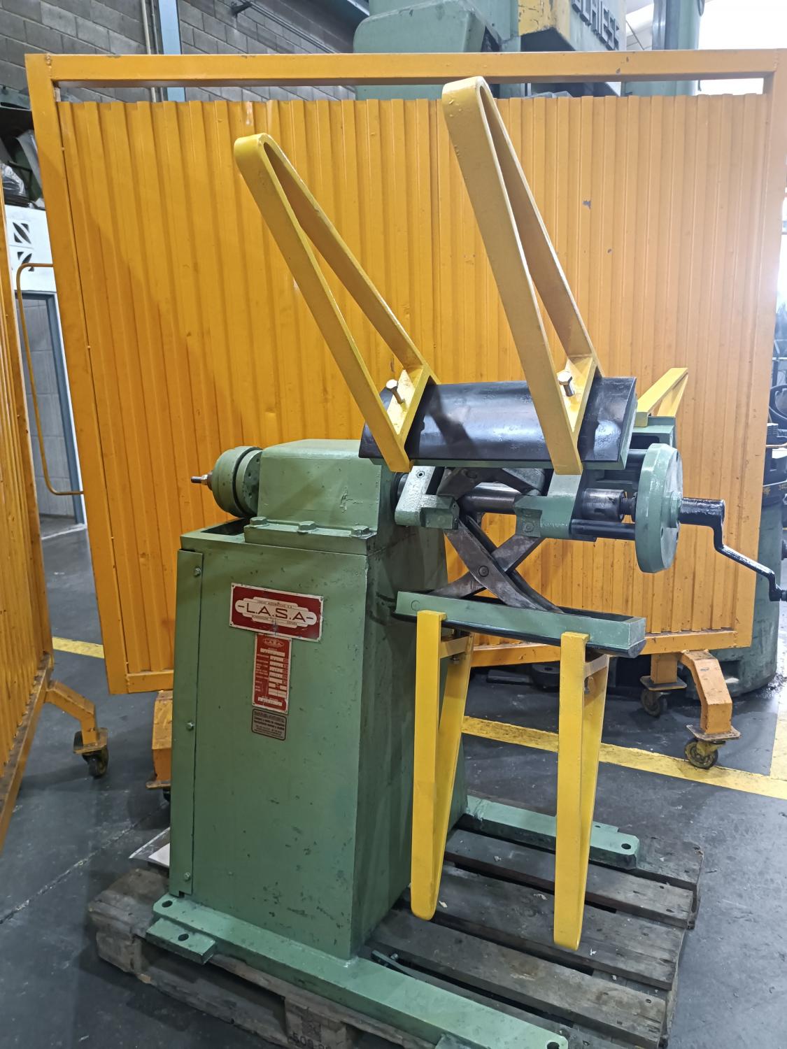 LASA FREE WINDER. Load capacity: 1500kg. Max ext. Ø 1500mm. Max.-*min. int. Ø 3600-550. Coil width: 350mm. Country of origin: Spain. Features: manual expansion. Dimensions: 1.10 x 0.8 x 1.10 mm. Weight: 480 kg. USED.