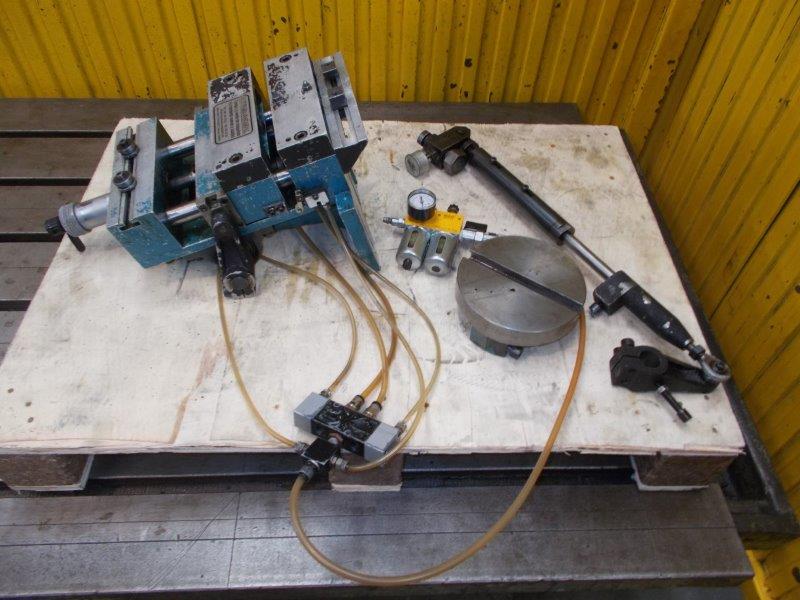 With arm, coupling disk to press crankshaft, pneumatic maintenance group, and valve.