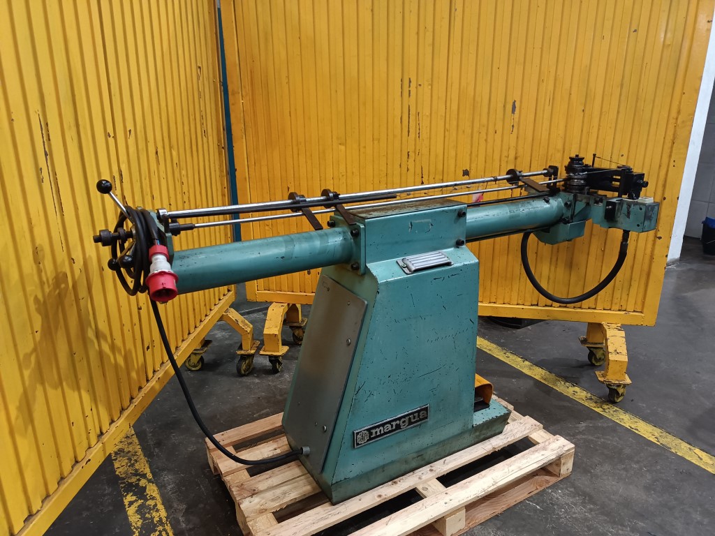 MARGUA CEM25 TUBE BENDING MACHINE With core, capacity Ø25mm, and length 1500mm, 2Hp motor, with dies for 16mm tube, minimum internal radius 25mm, maximum center radius 115mm. Dimensions: 2 x 0.60 x 1m. Weight: 245 kg.