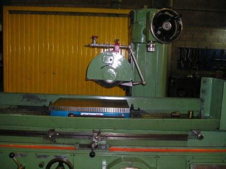 Rotating and tilting column table 1450 x 250mm, hydraulic and cooling group. It can be ground flat, transverse recesses and channels keyways shafts or other parts. With automatic advances . Weight 2600kg