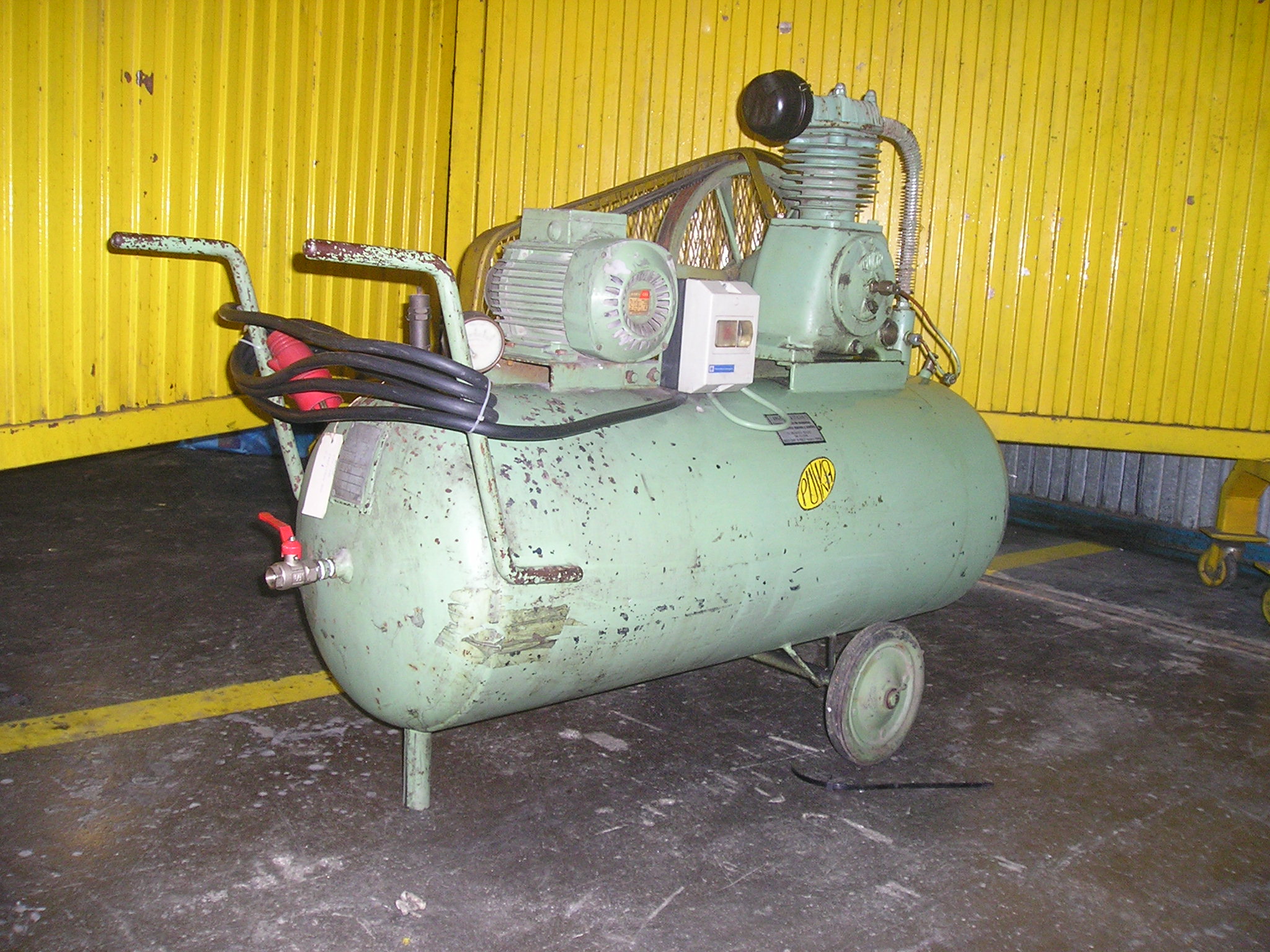 PUSKA COMPRESSOR, 1hp at 380V with wheels, pressure switch, tank of approximately 150 liters.